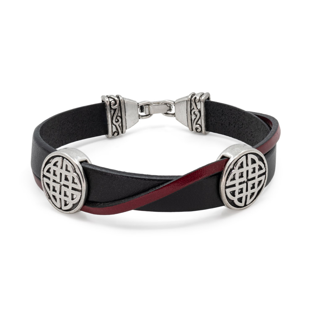 Bandă din piele, slidere argintii cu model celtic, încheietoare din oțel inoxidabil